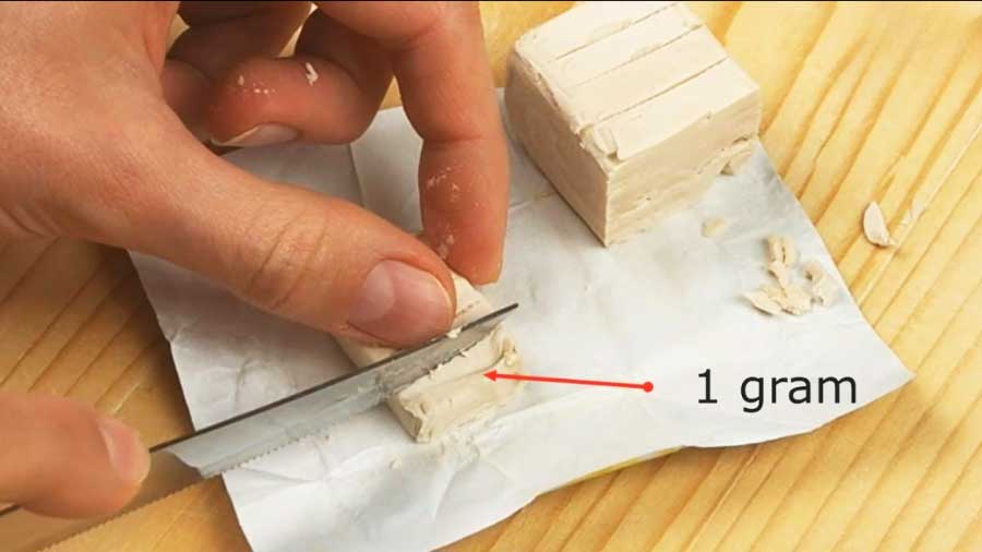 Keverjünk össze 1 teáskanál élesztőt 2 teáskanál mézzel, amíg homogén pasztát nem kapunk.