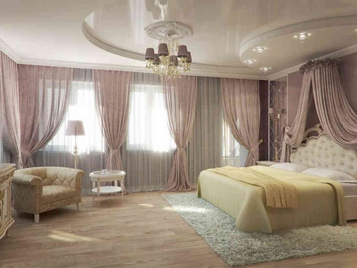 Például a világos mennyezet vizuálisan bővíti a teret, míg a sötét szín „ellopja” a magasságot. Magas belmagasságú házakban célszerű többszintű szerkezeteket készíteni.