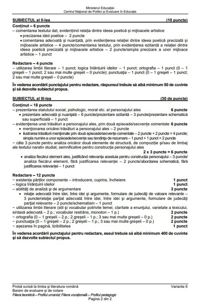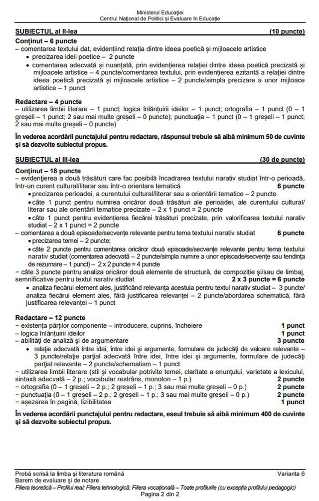 A román nyelven írásbeli vizsgát tett tanulók néhány óra elteltével útmutatóként ellenőrizhetik, milyen osztályzatot kapnak. A gyakorlatok helyes válaszait tartalmazó skálát az Oktatási Minisztérium a vizsgalapon teszi közzé. Később, július 3-án megtudják a pontos osztályzatot, de ha fellebbezést nyújtanak be, akkor július 7-én a végső osztályzatot.