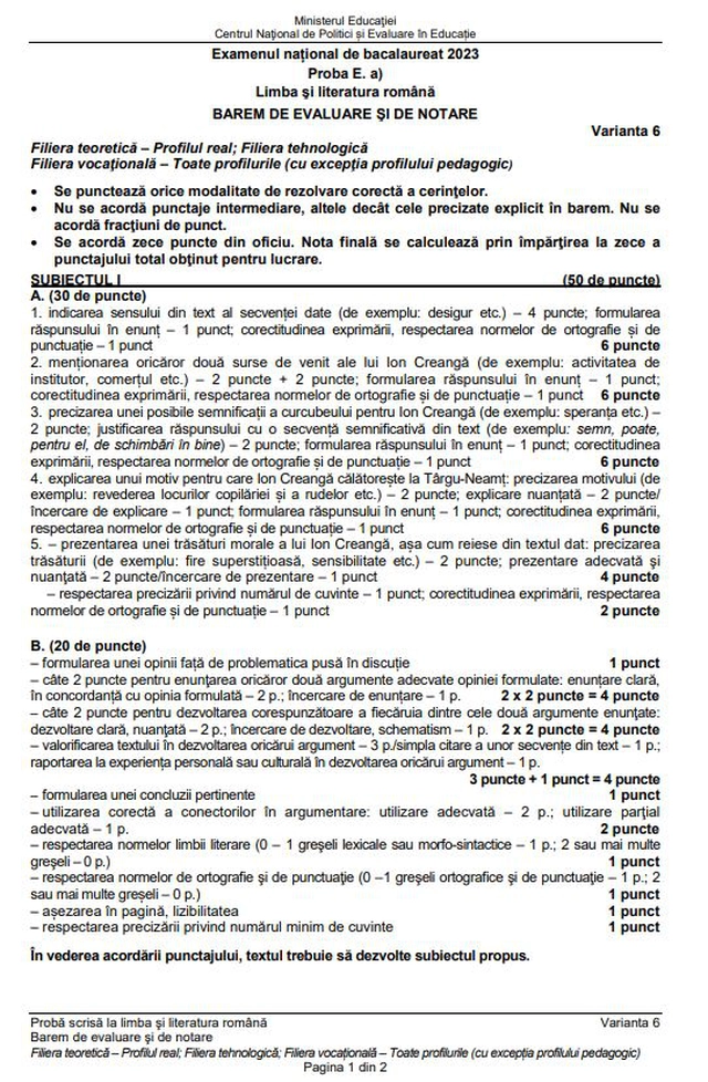 Javítási szint, érettségi 2023 tantárgyak megoldása román nyelvből