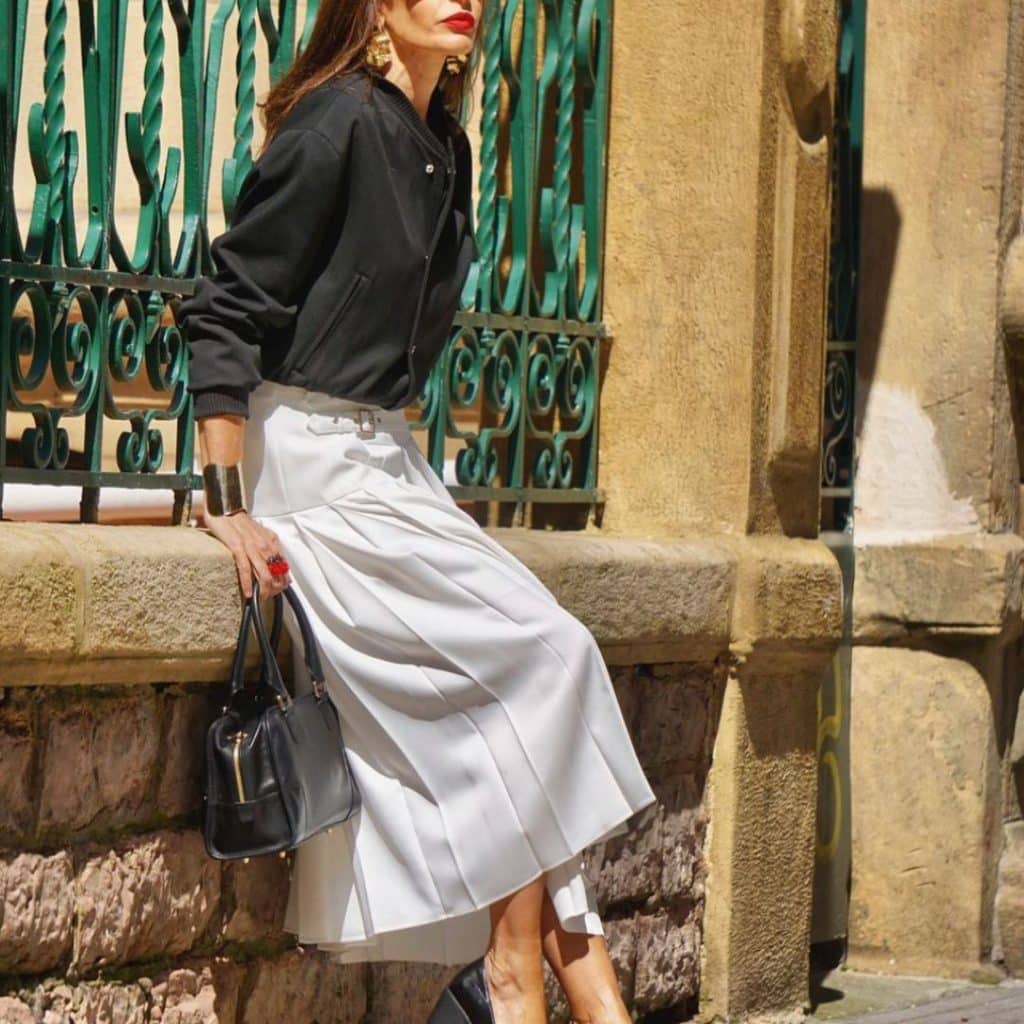A hajtogatott szoknyák másik előnye, hogy különböző sziluettekhez passzolnak. A lábszárközépig érő hossza nagyon sokoldalú, mivel kiemeli a derékrészt, ugyanakkor nagy mozgásszabadságot hagy. Ez alkalmassá teszi őket bármilyen testtípusú nők számára. Hordhatjuk őket lapos cipővel és sarokkal is. A stílusok és minták változatossága sem elhanyagolható. Egyáltalán nem kell egységesnek lenniük! A klasszikus monokróm modellektől a divatos geometrikus mintákig vagy virágmotívumokig – minden nő talál magának megfelelőt. A virágokat természetesen tavasszal különösen szívesen látjuk.