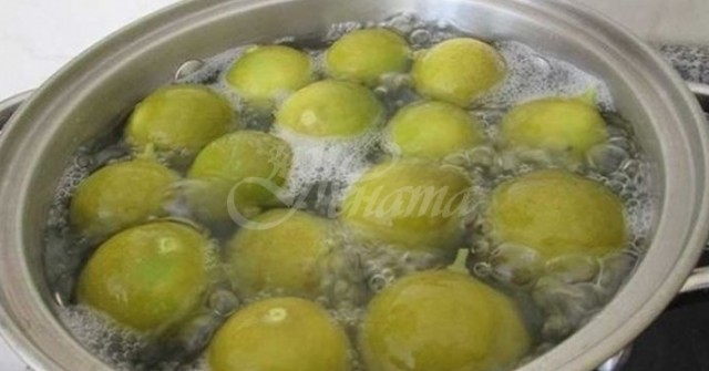Ezután öntsünk 2 liter vizet a serpenyőbe, és forraljuk fel a citromot a héjával. Amikor a víz eléri a forráspontot, adjuk hozzá a keveréket, és főzzük néhány percig. Végül kivesszük a citromot, és fedővel letakarva hagyjuk kihűlni.