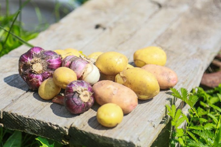 A konténereket a burgonya termőterületére temetik el. Az aljára burgonyaszeleteket és sárgarépadarabokat teszünk.