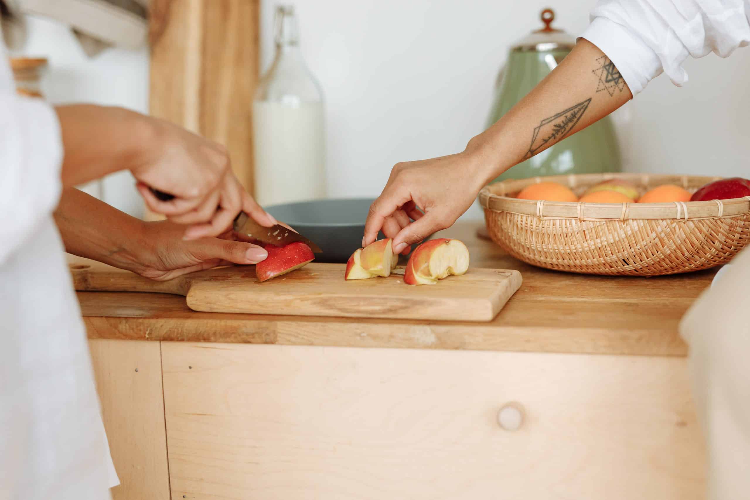 2. Ezután az almát meg kell hámozni, kimagozzuk, és apró darabokra vágni.