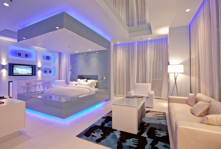 A tér teljesen más felfogásának kialakítása lehetővé teszi a lámpák többszintű telepítését.