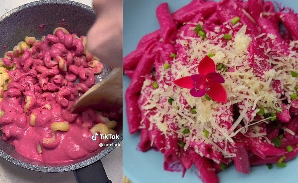 Kat Clark (@katclark) egyike azoknak az alkotóknak a Tiktokon, akik lefilmezték, ahogy a híres rózsaszín tésztát készíti. Csak néhány összetevőt használ: céklát, feta sajtot, natúr görög joghurtot, pirított fokhagymát, vizet és természetesen tésztát.