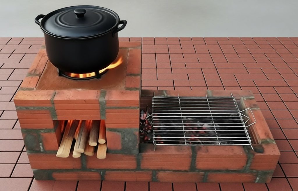 Funkcionális fatüzelésű kályhát saját maga is építhet, ha rendelkezik tűzálló téglákkal és alapvető építési ismeretekkel. A kialakítás egyesíti a nyitott grill és a zárt sütő képességeit főzőlappal. Különféle ételeket készítenek egy ilyen tűzhelyen – a grillsütőtől a serpenyőben lévő levesekig.