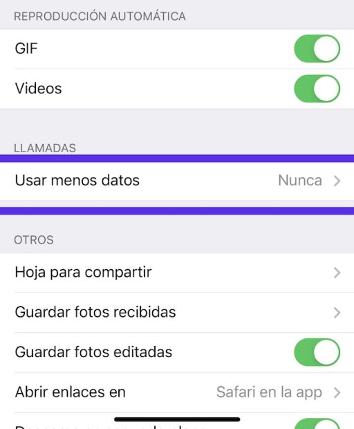 Van azonban egy trükk, hogy ha rendszeres lesz az ilyen típusú hívásoknál, kevesebb adatot költ a tarifára. Ehhez meg kell adnia Telegram-profilját az alkalmazáson belül, és meg kell lépnie a következővel: Adatok és tárolás. Ha erre a lapra lép, megjelenik egy Hívások című rész, amelyben megtalálja a lehetőséget Használjon kevesebb adatot. Ily módon a Telegram minimálisra csökkenti a mobil adatfogyasztást hívás közben.