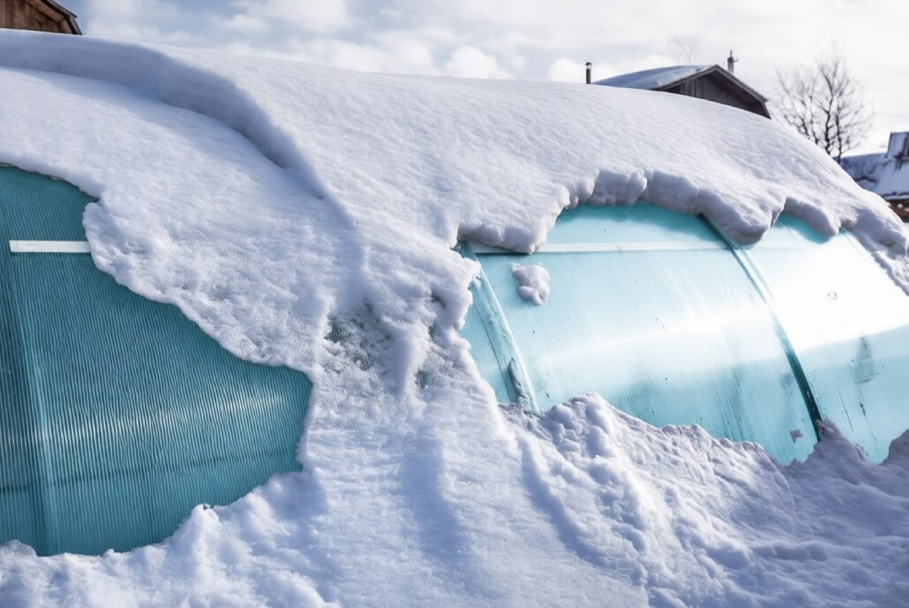 A téli havazás komoly veszélyt jelent a vidéki üvegházakra, különösen a polikarbonát szerkezetekre. A tetőn lévő nehéz hótömeg a keret deformálódásához vagy a burkolat teljes megsemmisüléséhez vezethet.