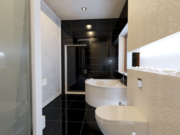 Általában mindent a falakhoz igyekszünk elhelyezni a szoba körül, üres, kihasználatlan helyet hagyva. Ne féljen az egész teret kitölteni, hogy a fürdőszoba a lehető legkényelmesebb és használhatóbb legyen.