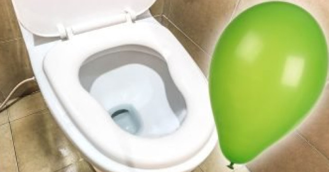 Általában egy ilyen ütközés következtében kilyukadt léggömbből egy nagyon csúnya permet szökőkút törne ki. Ám a ragasztószalagnak köszönhetően léggömbünk egyszerűen felfújódik, különösebb hatások nélkül. Ez az, a buborék a WC-ben betöltötte küldetését. És a WC tisztábbnak tűnik, mint valaha!