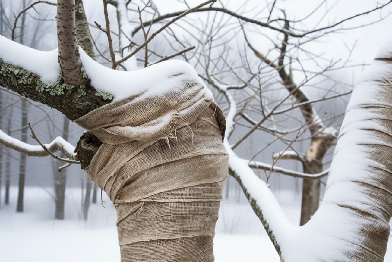 Lépésről lépésre a fák zsákvászonnal való lefedéséhez: