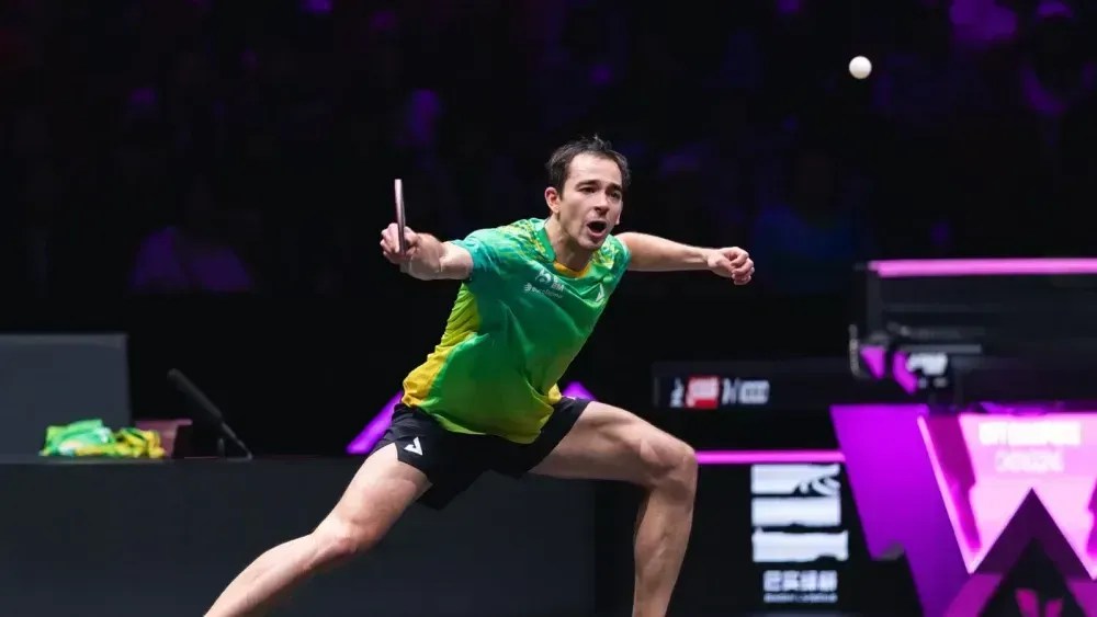 Az asztalitenisz világranglistájának jelenleg 4. helyén álló brazil Hugo Calderano a kínai Csungkingban zajló WTT Champions negyeddöntőjében szerepel. Ezen a péntek reggel (13) a riói születésű 3 szett 1-re verte az ITTF-listán harmincadik horvát Tomislav Pucart.