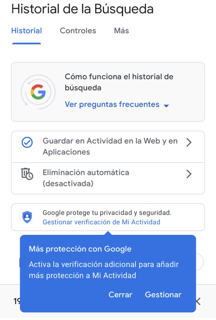 Két lehetőség azonnal megjelenik. Rá kell kattintani További ellenőrzésre van szükség. Ennek köszönhetően, ha valaki bejelentkezik egy Ön által használt számítógépre, akkor meg kell tennie írja be a Google jelszavát hogy láthassa a teljes történelmet.