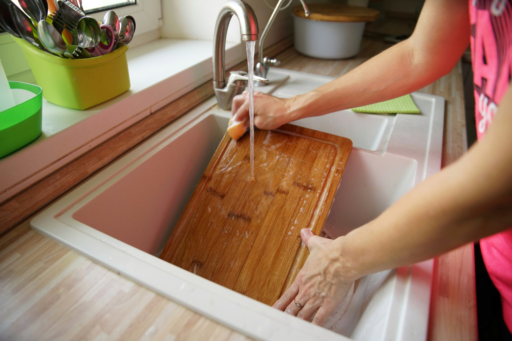 A nyers hússal való munka után sterilizálja a tányért forró vízzel. Alternatívaként használhat citrusolaj és víz oldatát is – keverjen össze néhány csepp olajat fél pohár vízzel. Ez az oldat nemcsak tisztít, hanem kellemes illatú is a munkalapon.