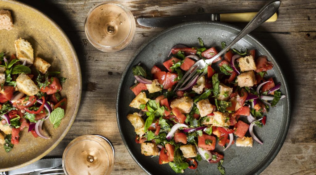 Bortipp: ital fűszeres olasz fehérborral, például verdicchio dei castelli di jesi. A friss zöld fűszernövényeknek köszönhetően ez az étel tökéletesen passzol egy könnyű, lehetőleg Provence-i rozéhoz is. Az élénkítő jegyek ellensúlyozzák a paradicsom és a görögdinnye édességét.