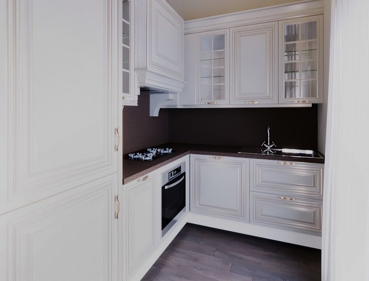 A legjobb megoldás egy kis konyhához a fehér. Vizuálisan megnöveli a teret és megtölti fénnyel. A bármilyen színű bútorhomlokzat organikusan néz ki ezen a háttéren. Könnyen kombinálhatók piros, citrom, narancs, világoszöld, kék vagy világoskék, fekete, metál és fával. Minden fő tárgy hófehérben vagy annak árnyalataiban díszíthető: falak és mennyezetek, munkalapok, bőrök, bútorok homlokzatai. Ez a szín a tisztaság, a kényelem és a frissesség érzetét kelti.