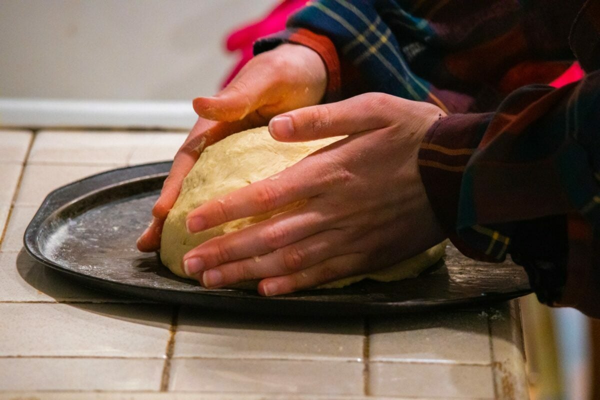 - Gyúrjuk össze a tésztát, és várjunk egy órát, amíg megkel.
