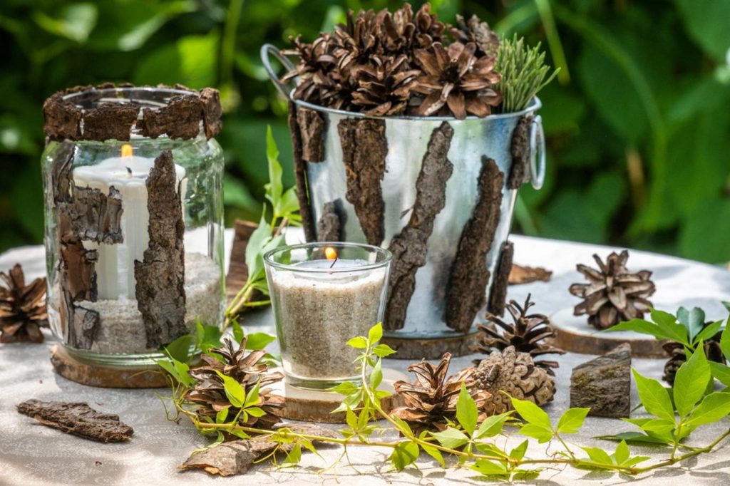 Hogy tetszett a rendezés? Bármilyen természetes anyag szép, de ha jobban szereti a lágyabb színeket és anyagokat, használhatja például a nyírfa kérgét. Ez egy nagyon specifikus anyag, amelyet lehúzás után ollóval vagy késsel lehet formázni.