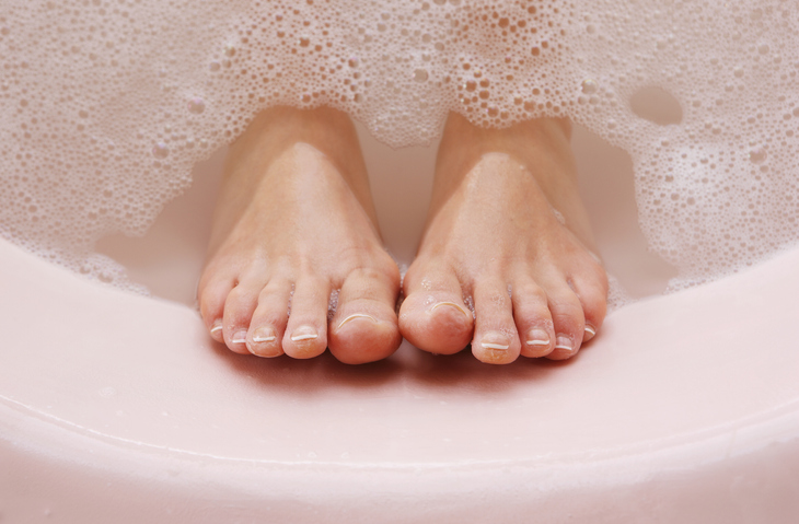 - Áztassa a lábát a vízben körülbelül 15-30 percig. Vedd magadnak ezt a pillanatot. Csukja be a szemét, vegyen egy mély lélegzetet és lazítson.