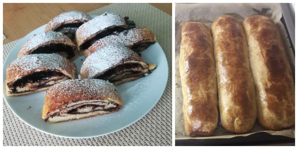 4 részre osztjuk, mindegyiket golyóvá forgatjuk, töltelékkel (én mákot választottam).