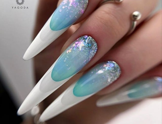 A smaragd, finom kék, arany és lila körmök gyönyörűek. Adjon hozzá nagy csillogást, kis csillogást és állatmintát. Mindez újra divatba jött. Ez a kialakítás matt vagy fényes felülettel is bevonható.