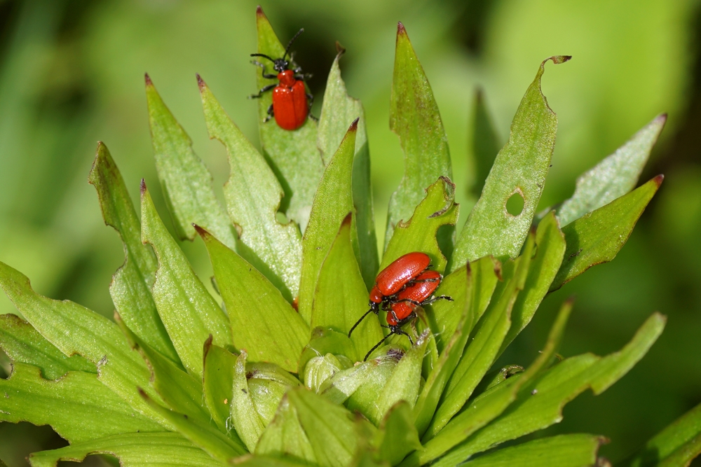 Lily -valószínűség (Lilioceris lilii) élénk színű bogarak, amelyek 6-8 mm -re mérnek. Gyakran ellátogatnak a kertekben, mint a meg nem hívott vendégek. A legkárosabb bogár egy liliomfa, jellemző fekete fejjel és lábakkal és vörös törzskel. Kevésbé gyakori a hagyma liliom, akinek a feje és a lába is piros.