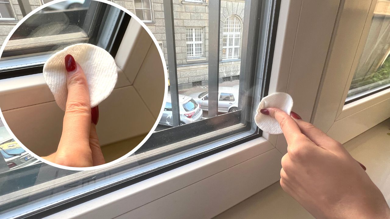 Mártson ebbe az oldatba egy vattakorongot, és törölje át vele az ablakkereteket