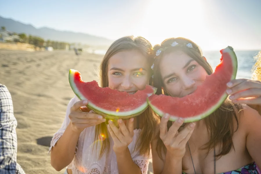 A tiszta víz fogyasztása mellett előnyös a magas víztartalmú ételek fogyasztása. A görögdinnye nagyszerű választás, mivel a pép 90%-a víz. Nem titok, hogy a gyümölcs segít megbirkózni a szomjúsággal.