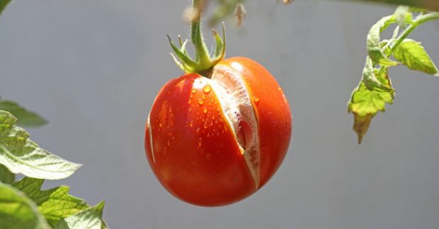- elégtelen öntözés – kevés nedvességet kapva a paradicsom héja megnyúlik, majd ismét kiszárad és megreped;