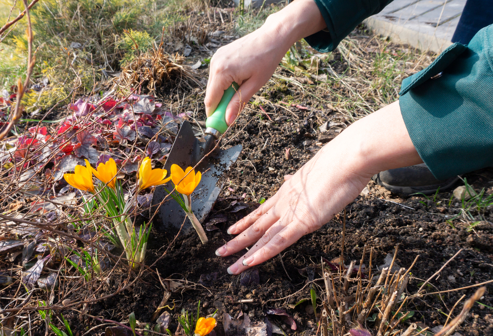 - Óvatosan szúrjon egy kerti villát vagy lapátot a földbe, körülbelül 10 cm-re attól a helytől, ahol a sáfrányok nőttek;
