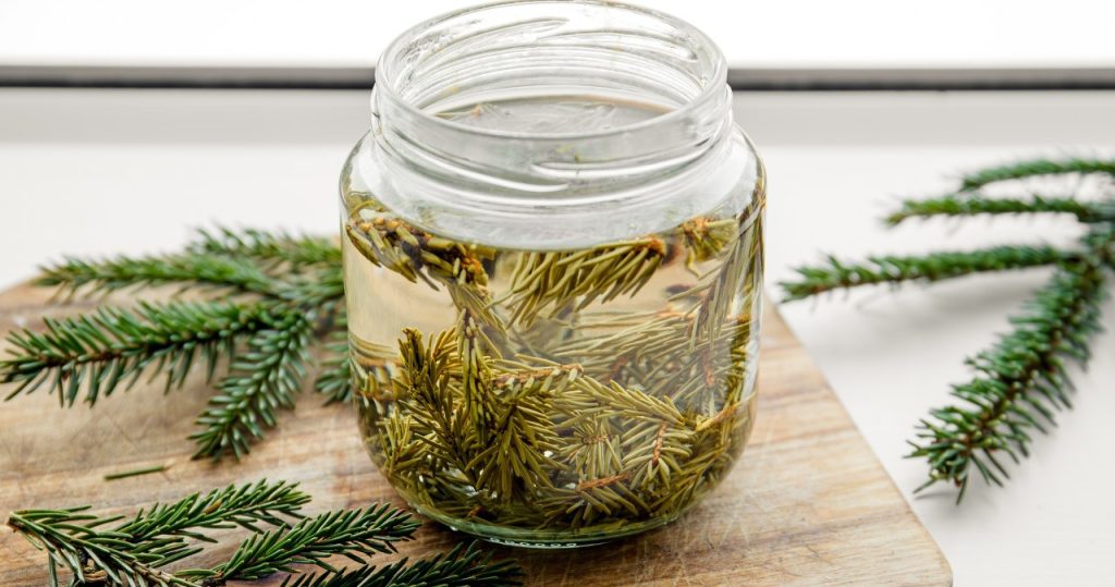 A tűknek meg kell tölteniük az literes edény körülbelül felét, és meg kell maradniuk teljesen befedve ecettelaz almás változat enyhébb illatot, a szeszes változat pedig erősebb tisztító hatást biztosít. A tűk finomra aprítása megkönnyíti az illóolajok felszabadulását, és egy friss gally hozzáadásával a fa fokozza az aromát. A szorosan lezárt üveget legalább három hétig árnyékos helyen kell tartani, majd a folyadék színe megváltozik és fokozódik.