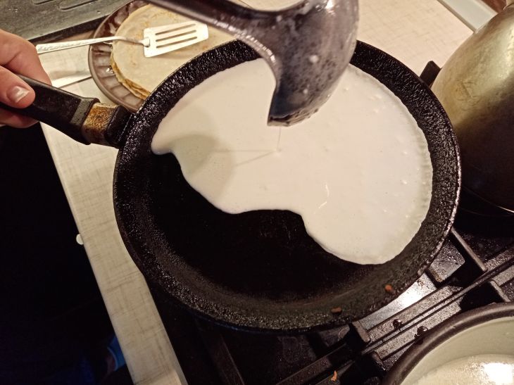 Ha kész a tészta, folytathatjuk a sütést. A serpenyőt elő kell melegíteni.