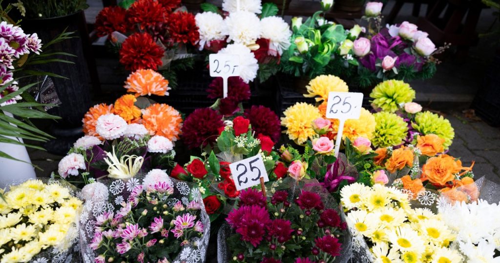 A tulipánok, jácintok és fréziák intenzív színükkel felkeltik a vásárlók figyelmét, de a novemberi körülmények között gyorsan elhervadnak. Alkalmazkodtak hosszabb nappalok és enyhébb hőmérsékletekezért a temetőben gyorsan veszítenek vizet, életfolyamataik pedig már néhány óra elteltével leállnak. Ez látható a rügyek gyors lehullásán és a szirmokon üveges elszíneződés megjelenésén. Ennek ellenére gyakran kerülnek az emberek bevásárlókocsijába, mert olcsók és erősen megjelennek a szupermarketekben.