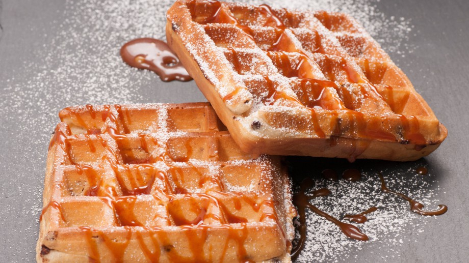 A kihűlt tésztából egyenként 30 grammos golyókat formálunk, amennyi egyforma, és előmelegített gofrisütőben szép színt sütjük. Amikor még melegen kivesszük, hosszában kettévágjuk és megtöltjük. Az egyik fele közepére egy kis kanál karamellt teszünk, ami a tűztől az egészben megolvad, a másik felével azonnal összehajtjuk és hagyjuk kihűlni, megkeményedni.