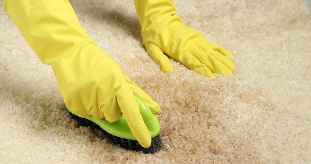 Következő lépésben alaposan kiporszívózott szövetekre permetezzük és szivaccsal vagy ecsettel kezdjük el bedörzsölni. Hagyjuk megszáradni a szőnyegeket, és csak ezután porszívózzuk újra.