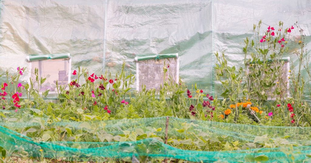 A zöldségkertben érdemes létrehozni egy kis tetőt az árnyékhálóból, kinyújtva a pólusok között– Ezt az anyagot is rögzítheti a kerethez – így létrehozunk egy mozgatható fátylat a növények számára.