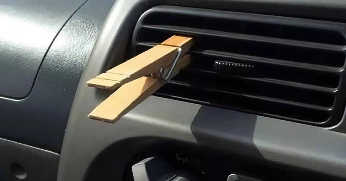Akárcsak otthon, a ruhacsipeszekkel az autóban is eltüntethetjük a kellemetlen szagokat. Helyezzen néhány csepp kedvenc illóolaját egy klipszre, és rögzítse a jármű szellőzőnyílásához.