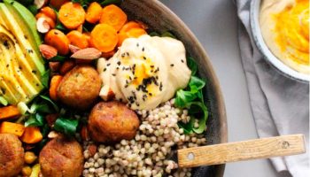 Falafel tál édesburgonyával és hummusszal