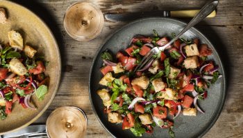 Kenyérsaláta paradicsommal, görögdinnyével és friss fűszernövényekkel a Jigal Krant-tól