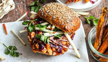 Húzott jackfruit szendvics BBQ szósszal és almával