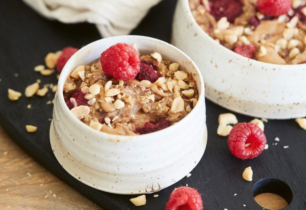 - Keverjük hozzá a málnát, és osszuk el a ramekinek között, szórjuk rá a maradék mogyoróvajat, és ízlés szerint adjuk hozzá még egy kis mogyoróval.