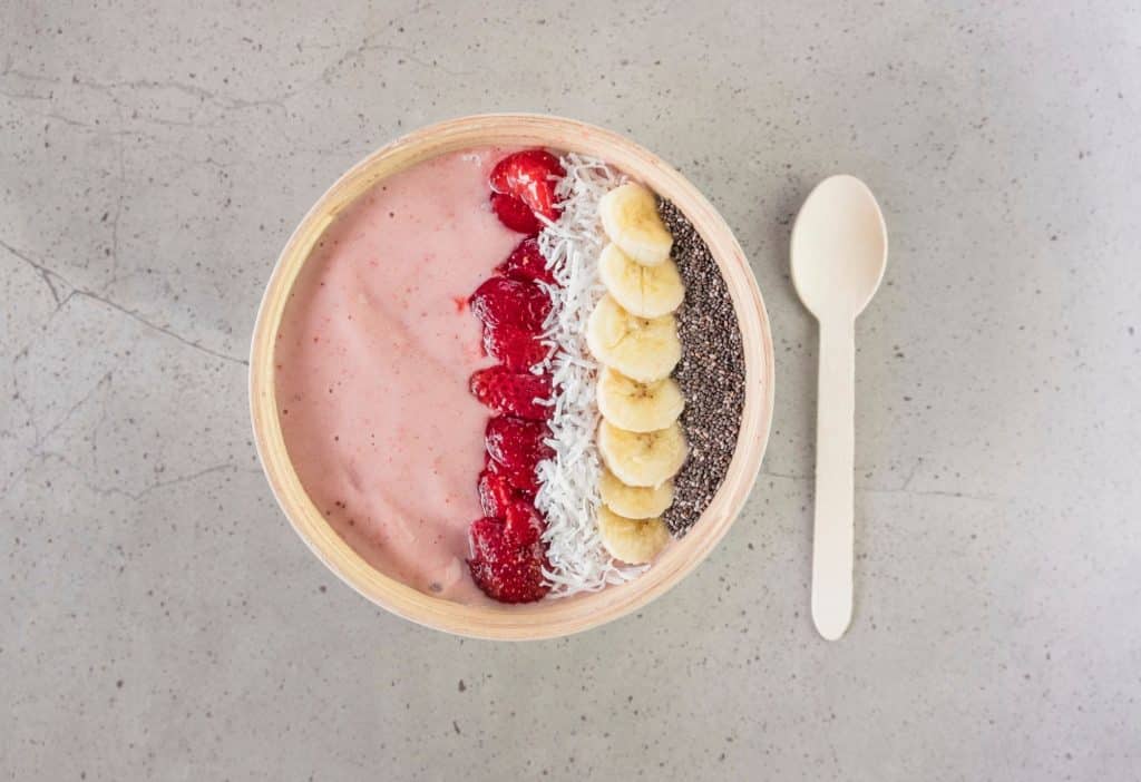 Kezdje a nehéztüzérséggel: egy jó turmixgép. Mivel fagyasztott gyümölccsel dolgozik, legalább 1200 wattos turmixgépre van szüksége. Majd elkészíted a turmixod alapját. Vegyünk körülbelül 200 gramm fagyasztott gyümölcsöt és egy érett banánt. Ezt tedd a turmixba egy kevés (növényi) tejjel, (kókusz-)vízzel vagy (növényi)joghurttal. Ügyeljünk arra, hogy a turmix ne legyen túl híg, hogy egy kanállal el tudja enni. Természetesen a turmixhoz adhatunk zöldségeket is, például egy marék spenótot vagy avokádót. Azonnal megkapja azokat a kellemes extra tápanyagokat.