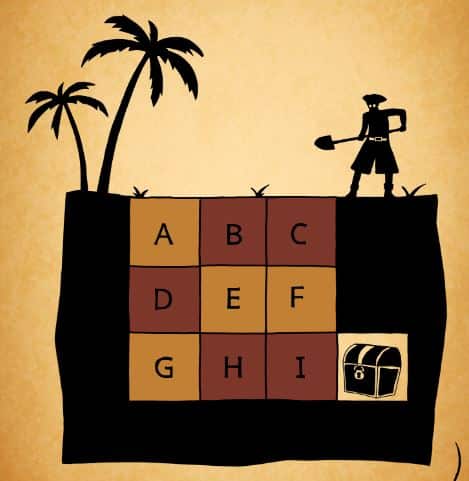 A megoldás magyarázata: Ahhoz, hogy eljusson a kincshez, Thornwoodnak meg kell szabadulnia a jobb szélső oszlop mindhárom blokkjától. Emiatt, és mivel Thornwood egyszerre csak egy szintet tud felmászni, hogy kijusson, két blokknak kell lennie a bal oszlopban és egy blokknak a középső oszlopban. Tehát ki kell küszöbölnünk C-t, F-et és I-t, amelyek négy dig. El kell távolítanunk két blokkot a középső oszlopban és egyet a bal oszlopban a maradék három ásásunkkal, tehát annak B, D és H kell lennie. Ezen kiküszöbölések alapján nem tudjuk elérni, hogy D blokk ássunk, amíg nem megszabadulni B-től és H-tól; egyébként a B és az E blokkok akadályozzák. A B blokkot a jobb oldali pillér kiásása után nem tudjuk elérni, ezért előbb meg kell szabadulnunk tőle. Tehát az egyik megoldás a BCFI elhagyása, fogd meg a kincset, majd ásd H-t, mássz fel a leesett E-re, ásd D-t, mássz fel a leesett A-ra, majd szállj ki. Beszélek „egy megoldás” mert a B-t és a C-t bármilyen sorrendben előáshatja” – írta egy negyedik.