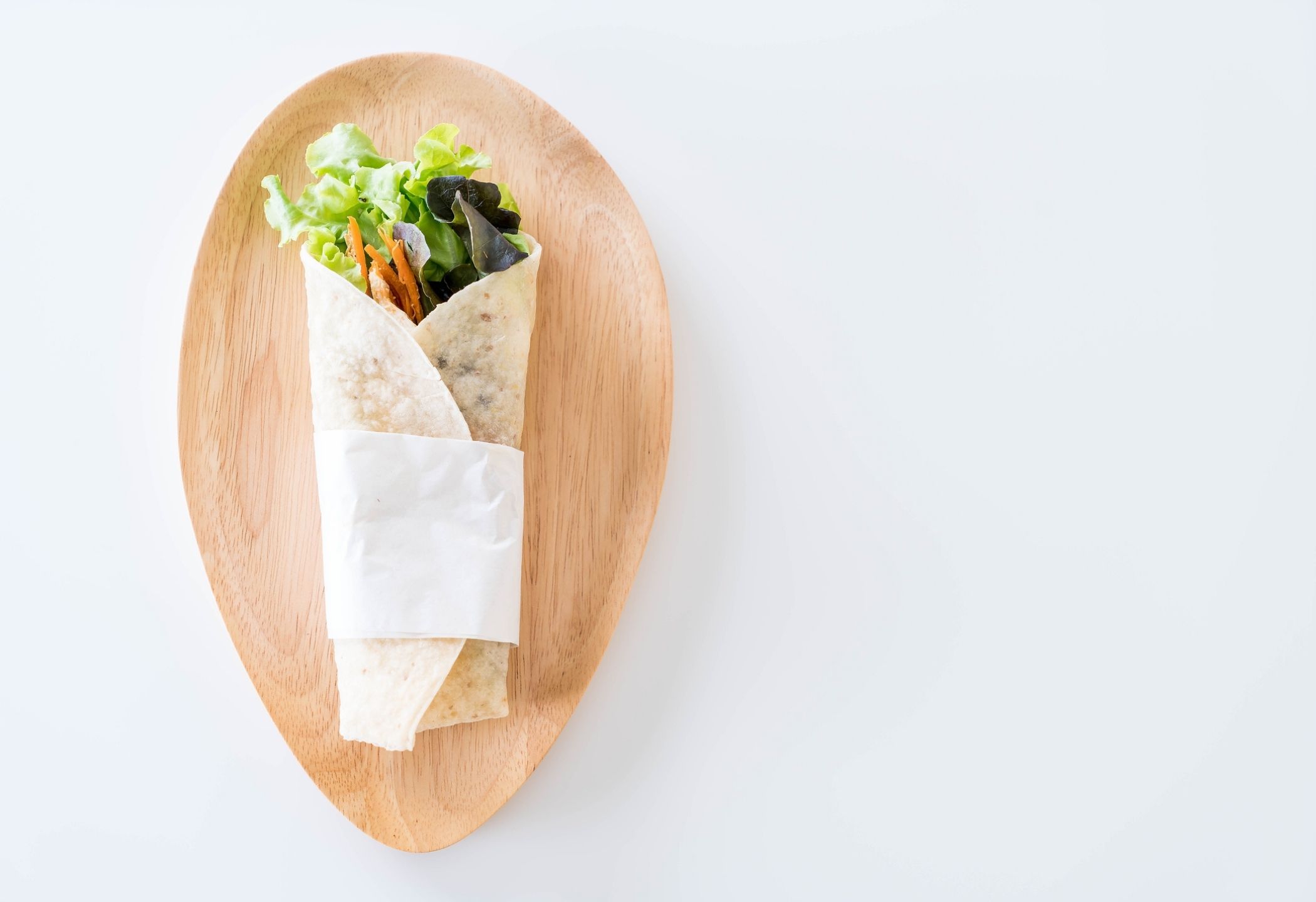 Tekerje fel a csomagolóanyagot erős csomagolásba, és ne használjon túl sok tölteléket. A tölteléket hosszában középre helyezzük, és az egész lapot megkenjük hummusszal vagy ragacsos szósszal. Ezután szorosan feltekerjük. Az aljára pedig egy szalvétát vagy egy darab alufóliát tekerhetsz, hogy kézből elfogyaszd.