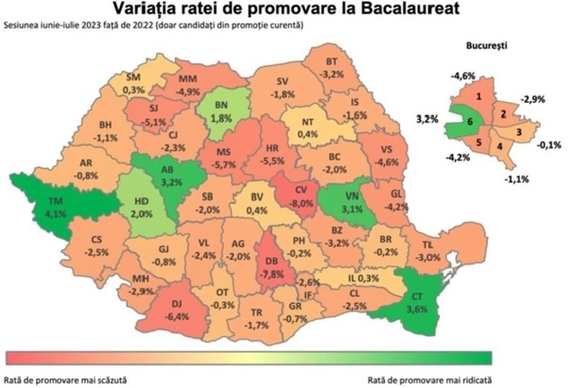 Ami a megyéket illeti, ahol a legalacsonyabb áthaladási arányt regisztrálták, Ilfov áll az első helyen 54,9%-kal, ezt követi: