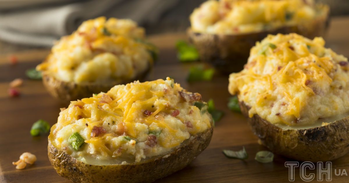 Ezzel a keverékkel megtöltjük a burgonyát, és 200 fokra előmelegített sütőben 15-20 perc alatt aranybarnára sütjük.