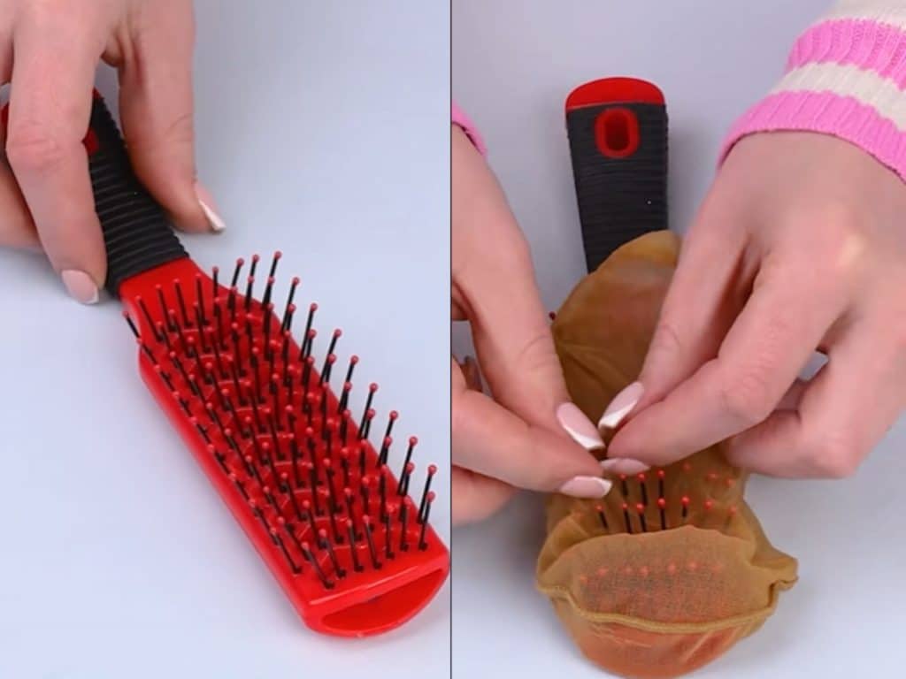 Húzzon zoknit vagy térdig érő harisnyát a hajkefére. Nem fogod elhinni, mi történik