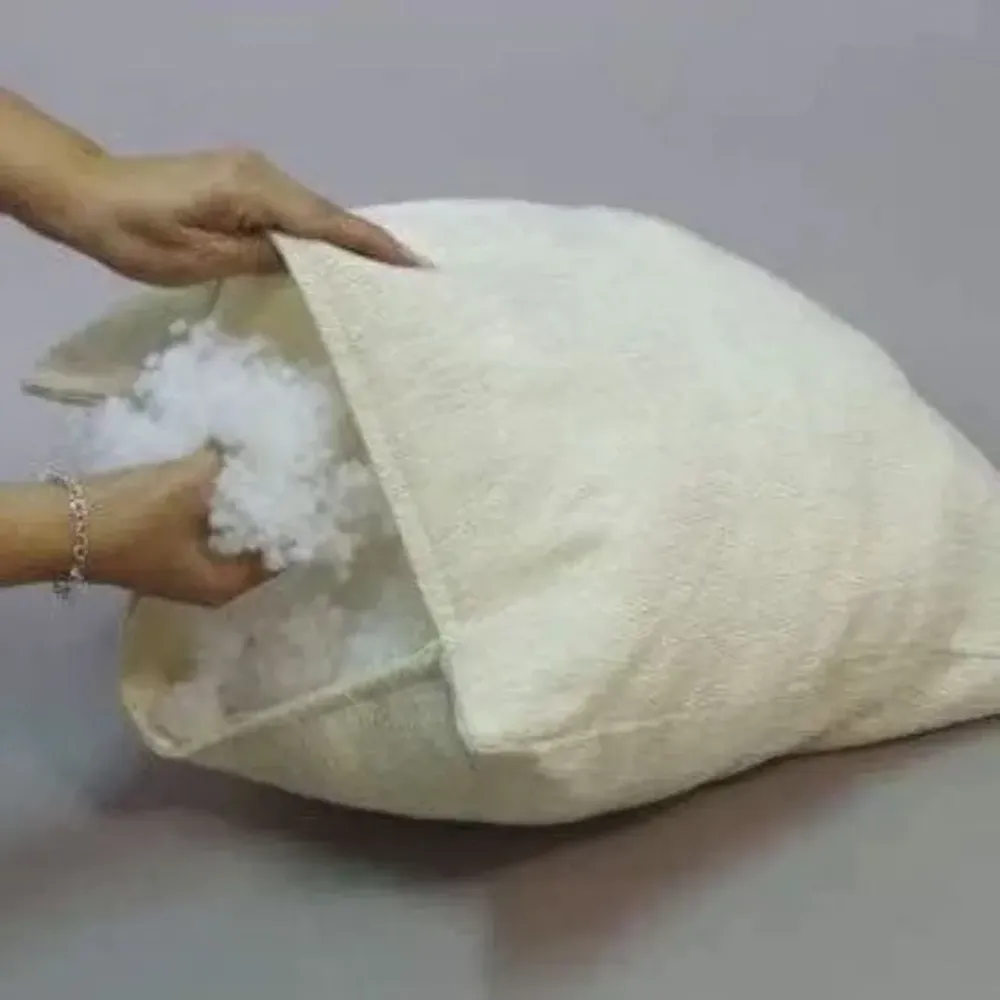 Fordítsa meg a párnahuzatot úgy, hogy a jobb oldala látható legyen. A meghagyott nyíláson keresztül kezdje el kitömni a párnát, amíg a párna el nem éri a kívánt formát és keménységet. Ha nincs új tölteléke, akkor régi párnákból származó tölteléket is újra felhasználhat.