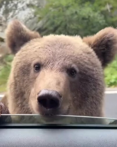 Vezetés közben a csoport két medvére bukkant az úton. Az egyik kíváncsi utas nem akarta kihagyni a lehetőséget, hogy megörökítse ezt az egyedülálló találkozót – letekerte az ablakot és felvette a telefont. A videón azt látjuk, ahogy az állat közeledik, majd a hátsó lábaira áll, és mancsával megpróbál benyúlni a jármű belsejébe.